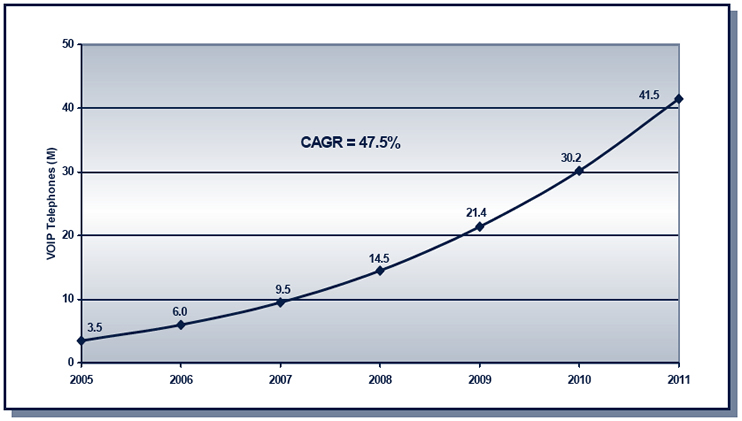 - The above chart shows significant growth in VOIP telephones over the next 5 years.